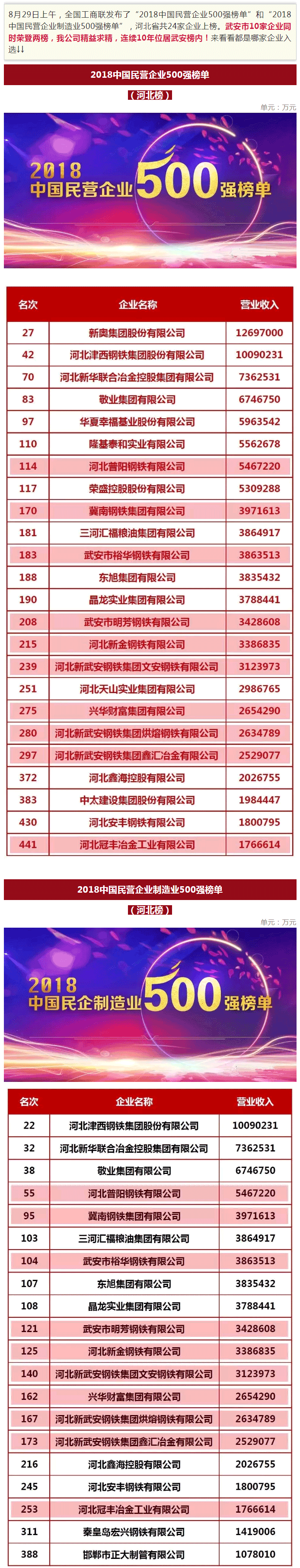 新聞?wù)?鑫匯公司榮登中國民營企業(yè)500強(qiáng),武安市10家企業(yè)榮登兩榜